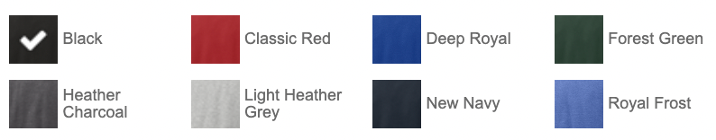 - 60/40 ring spun cotton/polyester (Heathers and Royal Frost)